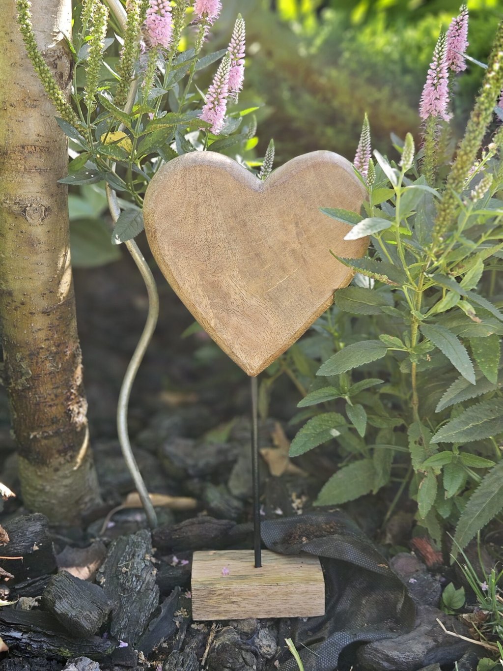 Drevená dekorácia – srdce na stojane
