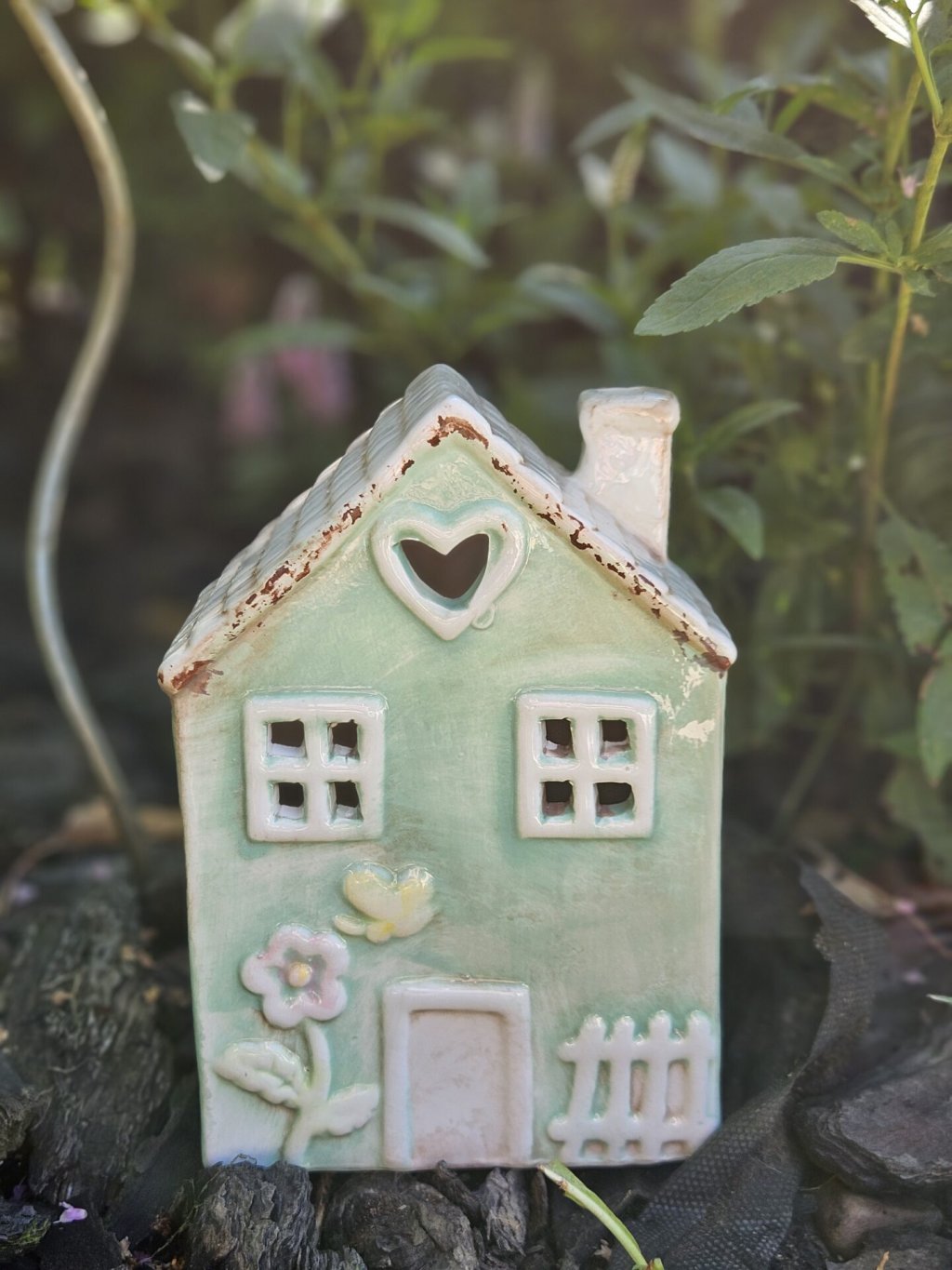 Keramický dekoračný domček na sviečku