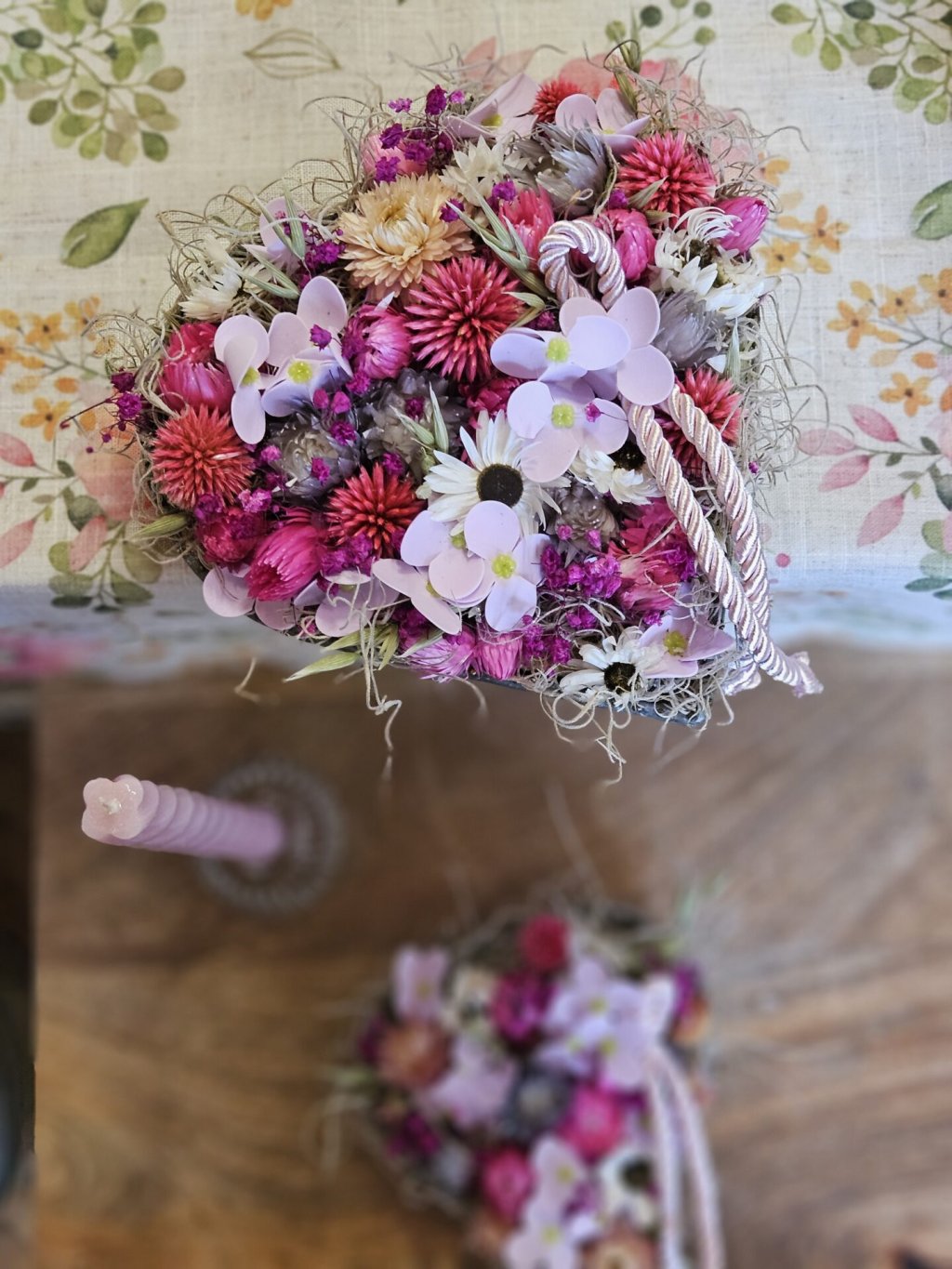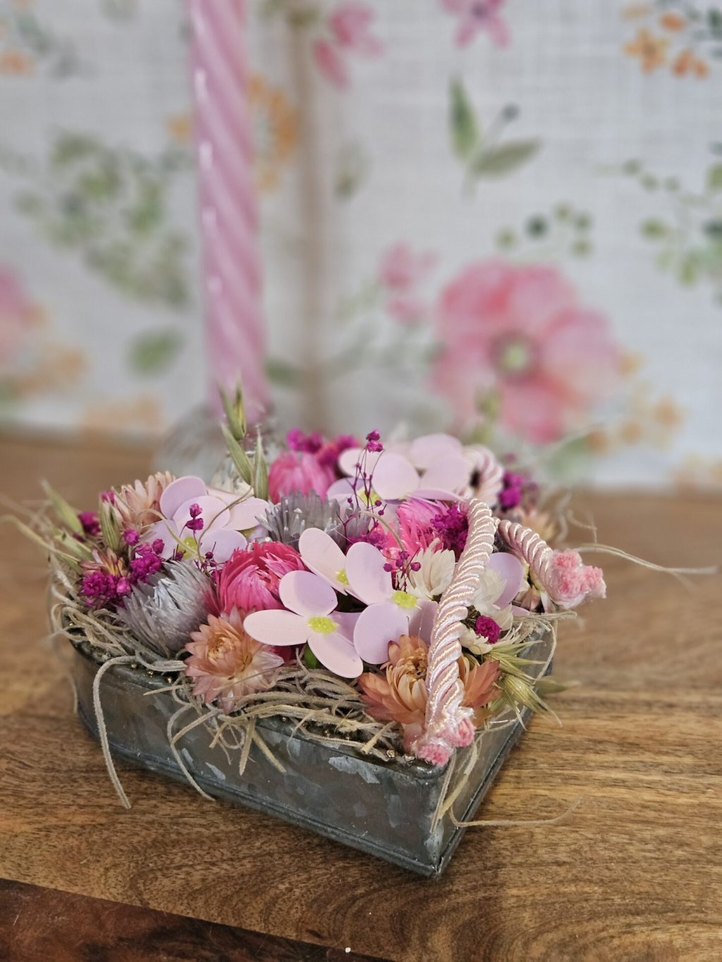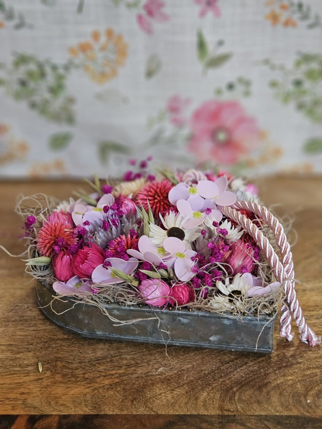 Ručne aranžované kovové srdiečko so sušenými kvetmi
