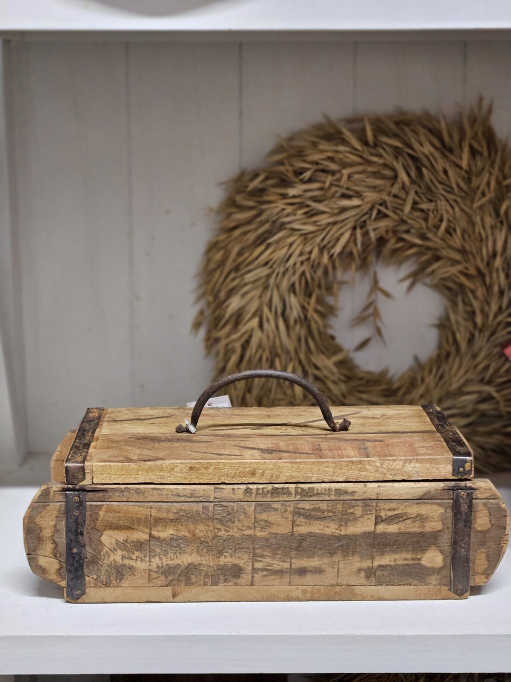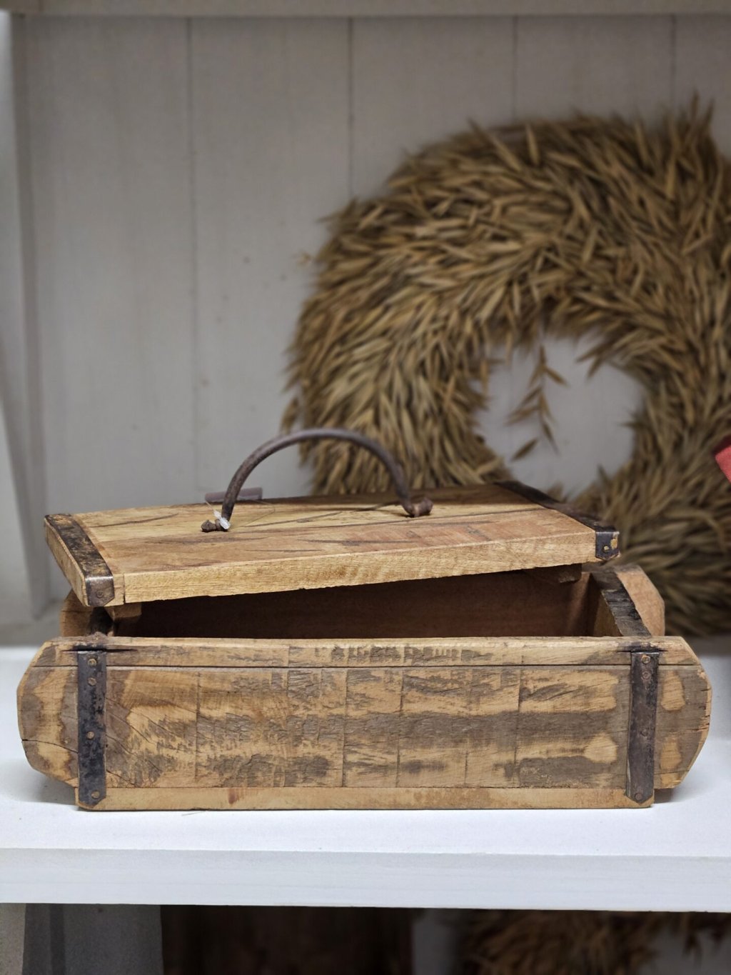 Rustikálna drevená truhlica s kovovým držadlom
