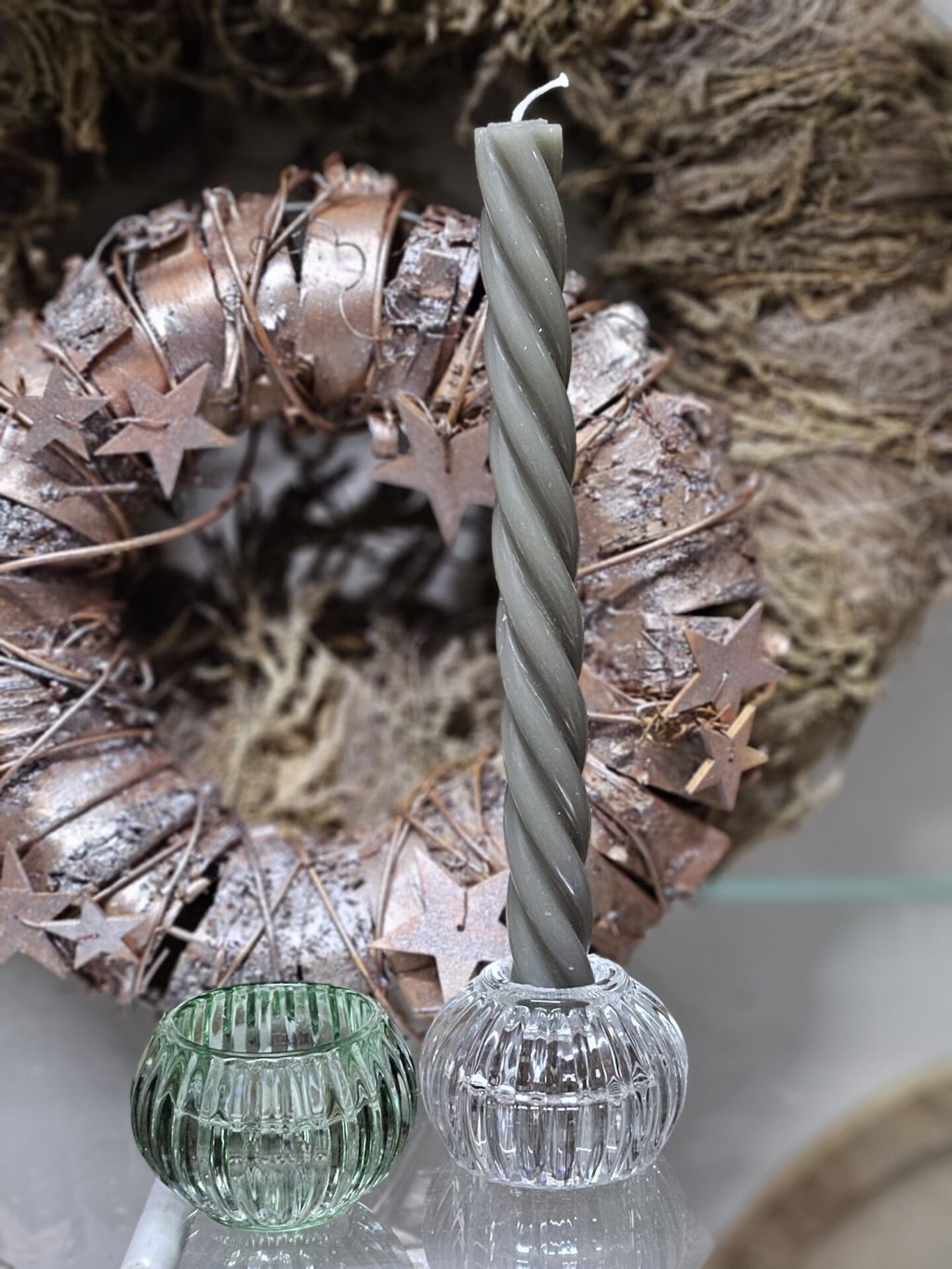 Sklenený svietnik – guľatý rebrovaný priehľadný