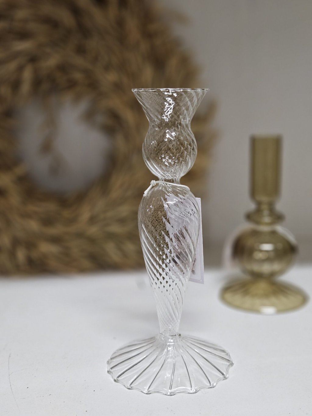 Sklenený svietnik z číreho skla