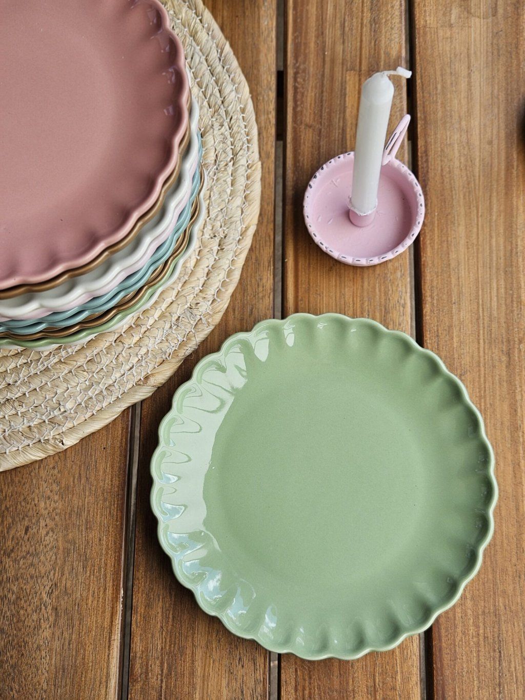 Oživte svoje každodenné stolovanie s ikonickou kolekciou Mynte od dánskej značky Ib Laursen. Tieto keramické dezertné taniere s charakteristickým vlnovkovým okrajom sú synonymom škandinávskej elegancie a útulného vidieckeho štýlu. Vďaka širokej palete pastelových a zemitých farieb ich môžete medzi sebou ľubovoľne kombinovať a vytvoriť si tak vlastnú unikátnu sadu, ktorá rozžiari každé raňajky či poobednú kávu s dezertom.