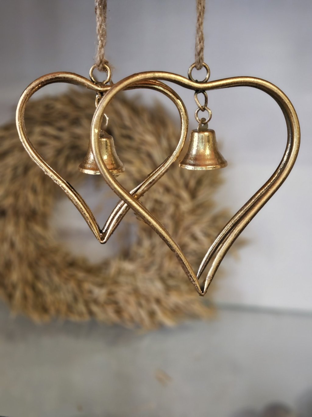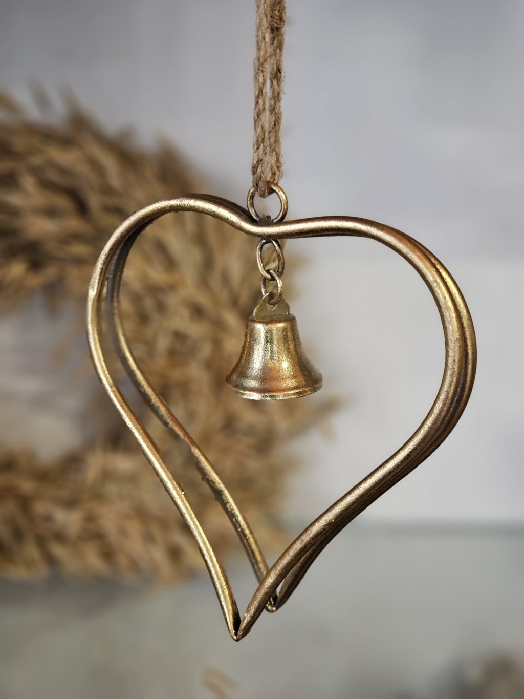 Zlaté kovové srdce so zvončekom